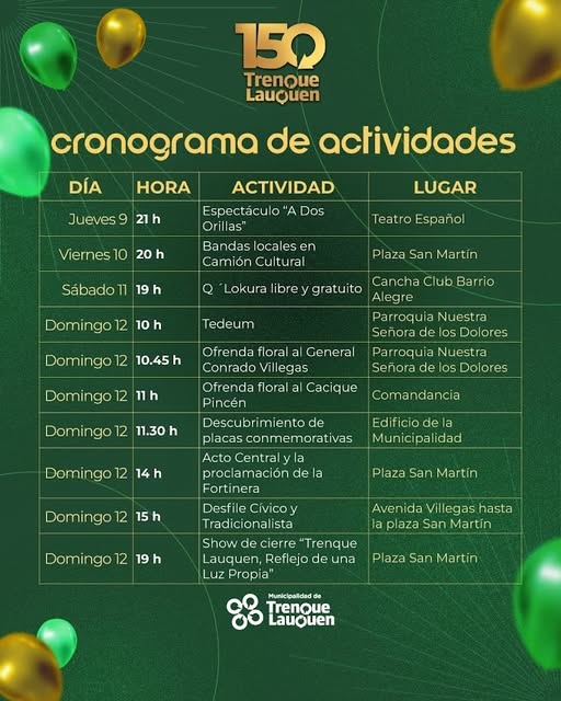 150 años de Trenque Lauquen: hoy comienzan los festejos centrales con la presentación de Q’ Lokura, mañana desfile con gran movilización comunitaria