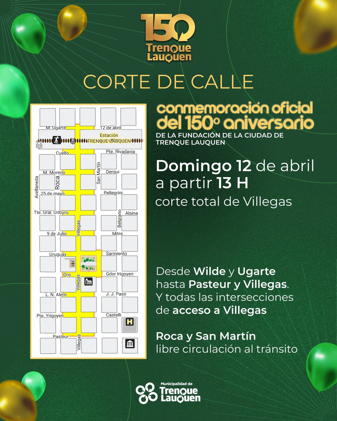 14 h: Acto Central y la proclamación de la Fortinera Trenquelauquense frente al edificio de la Municipalidad.