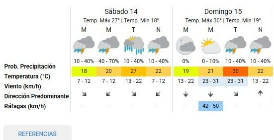 Estimación con bajas posibilidades de lluvias para hoy y mañana domingo.