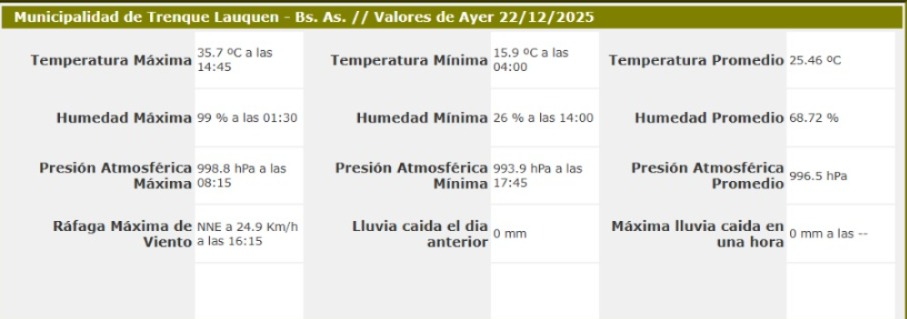Sensores climáticos municipalidad de Trenque Lauquen