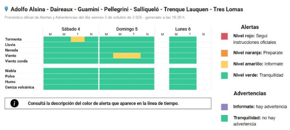 Alerta por tormentas para las últimas horas de la mañana, indicando el pronóstico que ese clima continuaría hasta la noche.