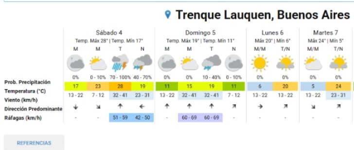 Pronóstico hasta el martes, donde se estiman tormentas hasta la noche, apareciendo posibilidades de lluvias para el domingo a la tarde.