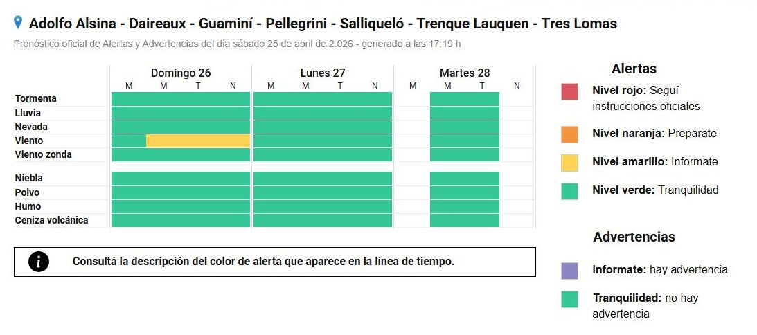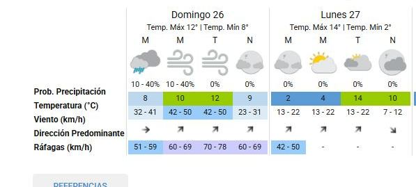 Por vientos fuertes en los distritos que marca el gráfico del + Servicio Meteorológico Nacional.