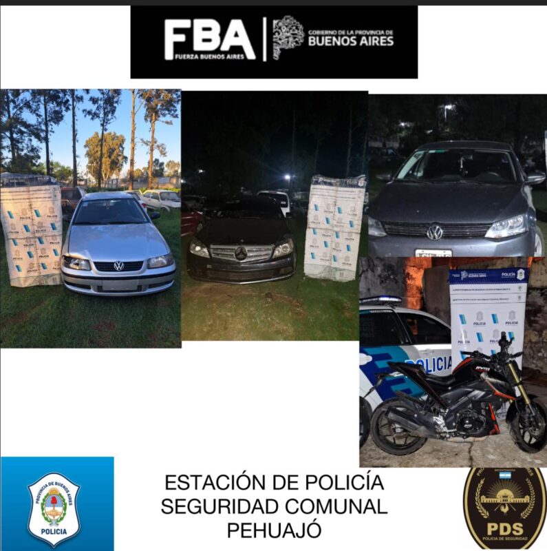Operativos en Pehuajó: una motocicleta y tres vehículos secuestrados