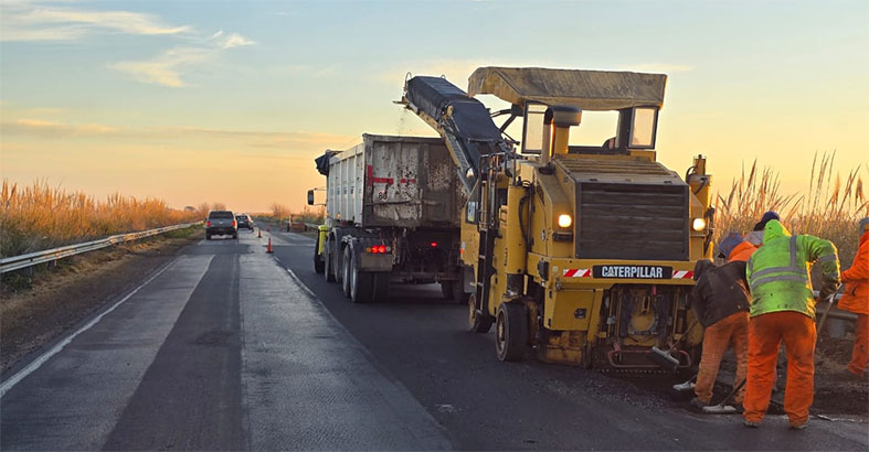 Se reparaba este miércoles el enorme bache causante de accidentes, como así también rotura del guard rail en el kilómetro...