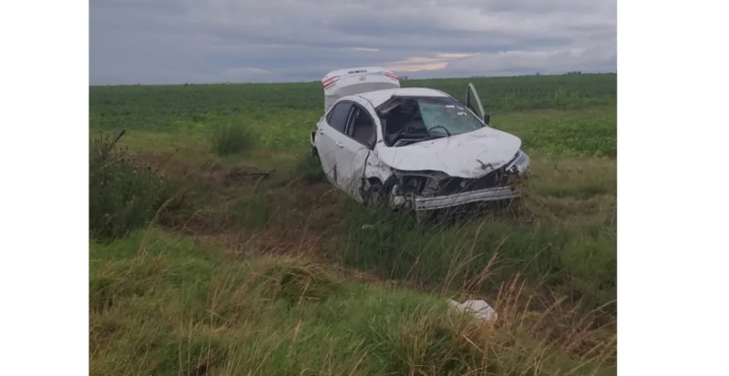 Un automóvil se despistó y volcó en la Ruta Nacional N° 5, a 14 kilómetros de la rotonda de Trenque...
