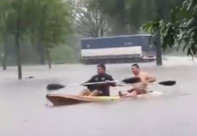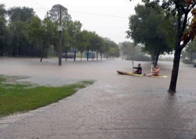 Calles cubiertas de agua de lado a lado, se puede ver en las fotografías que publicó eldiariodelapampa.com.ar. Algunas personas se movilizaron en kayak y otras embarcaciones dentro del ejido urbano.