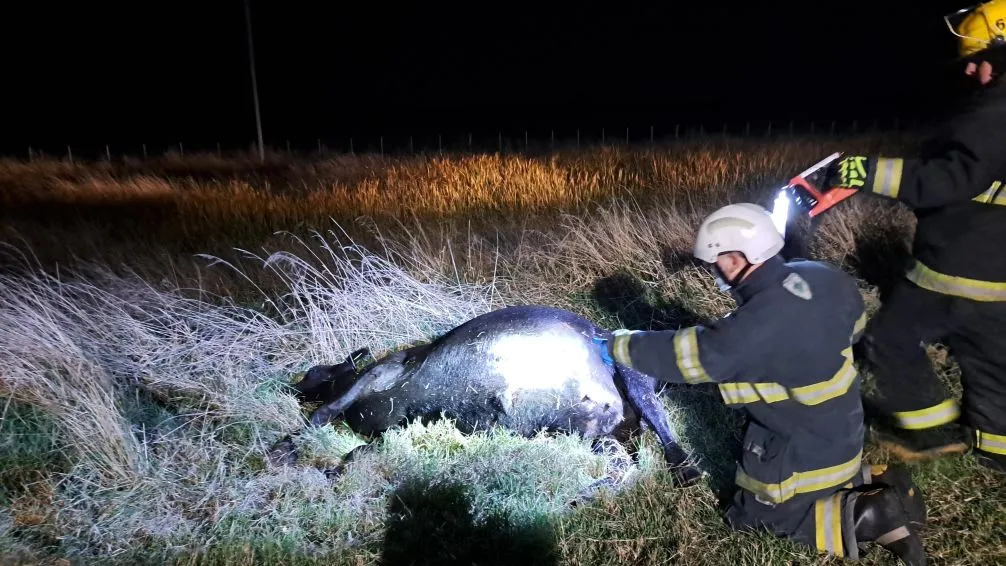 Los accidentados, cinco en total, se movilizaban en una camioneta Volkswagen Amarok. El conductor logró esquivar a varios animales que constituían una tropa, pero no pudo con uno de ellos.