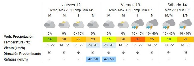 Clima: Hoy cielo parcialmente nublado, con vientos intensos por la tardecita