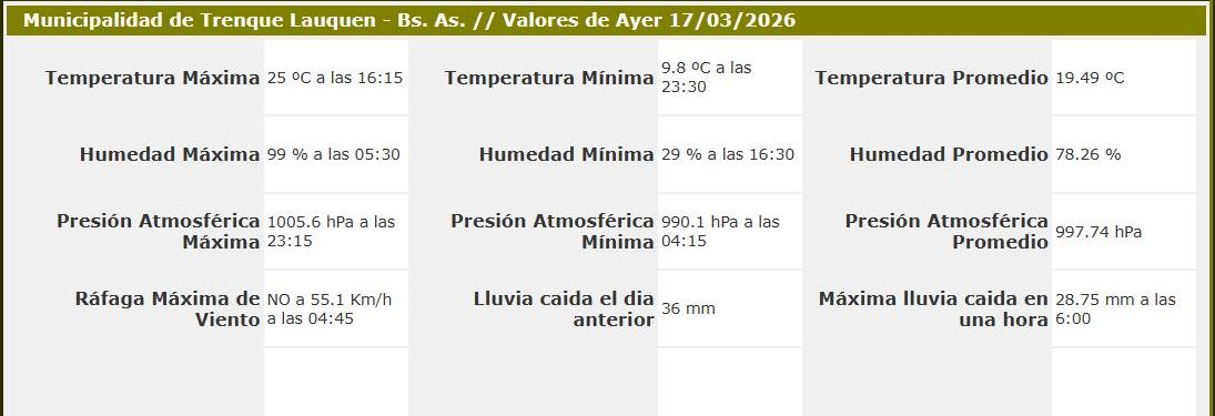 De culminar el #Verano2026, la temperatura llegó a los 25° en #TrenqueLauquen. Soplaron ráfagas de viento intensas a la madrugada y el registro de lluvia es de 36 mm.