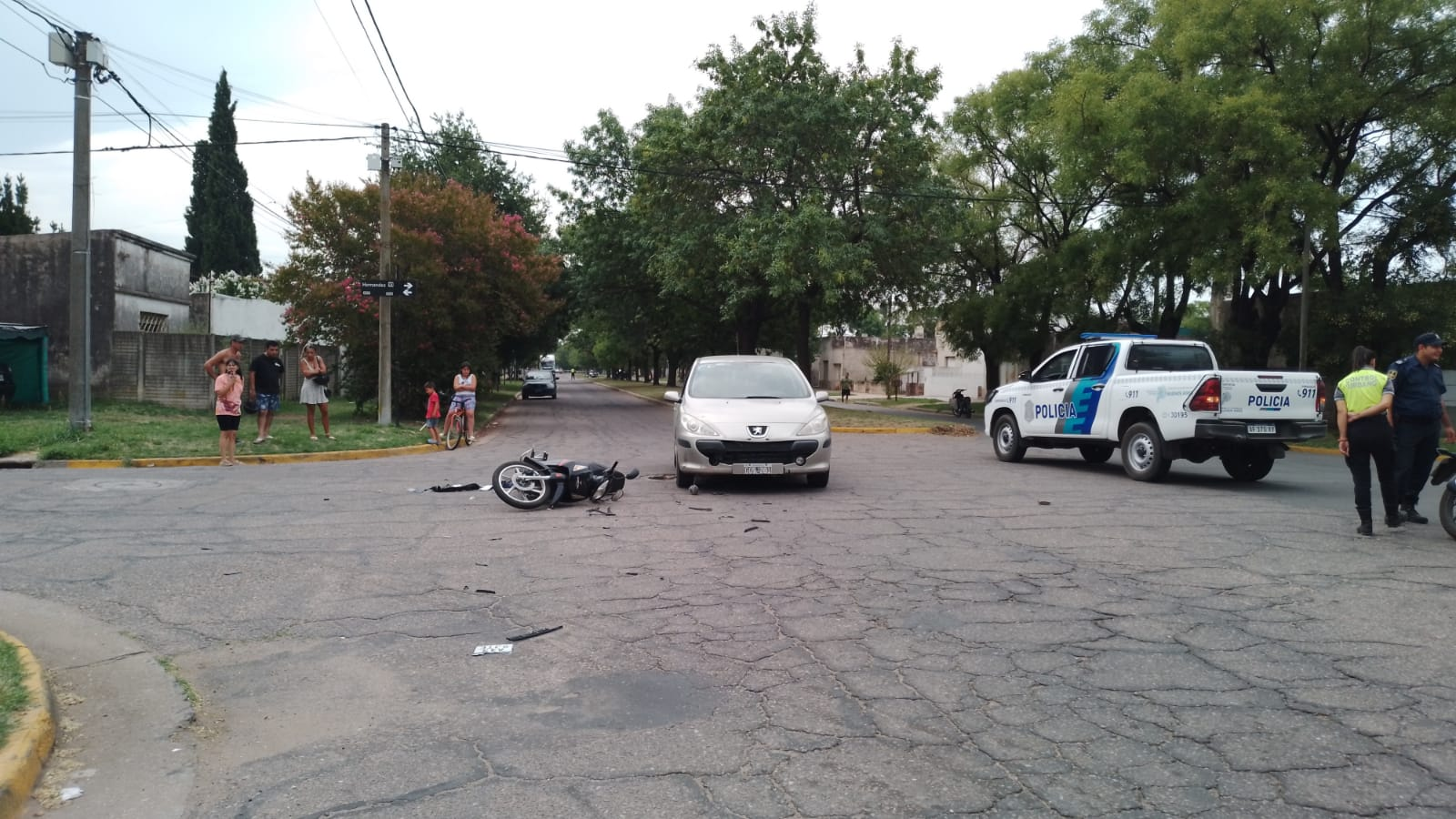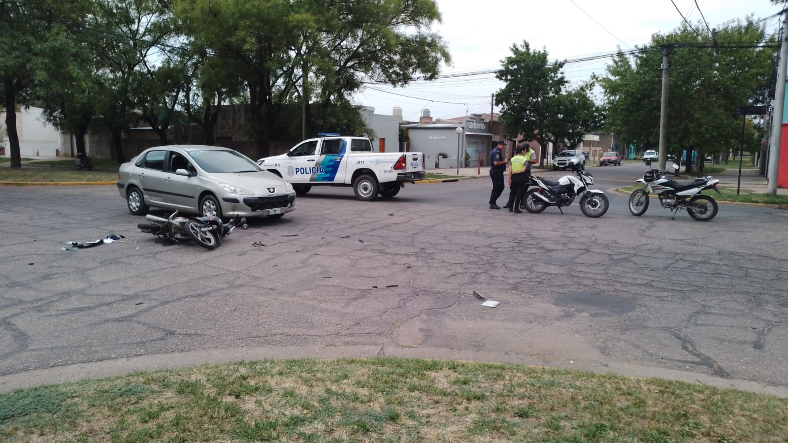 Ayer se registró un accidente de tránsito en la intersección las calles Lagos y Hernández Trenque Lauquen. Un automóvil marca Peugeot, modelo 307, color gris , dominio GGS-201, conducido por Ricardo Plas y una motocicleta marca Corven, modelo 110 Energy, color negra , dominio A139JTE, conducida por Gonzalo Emanuel Cabral, colisionaron en la dirección mencionada.