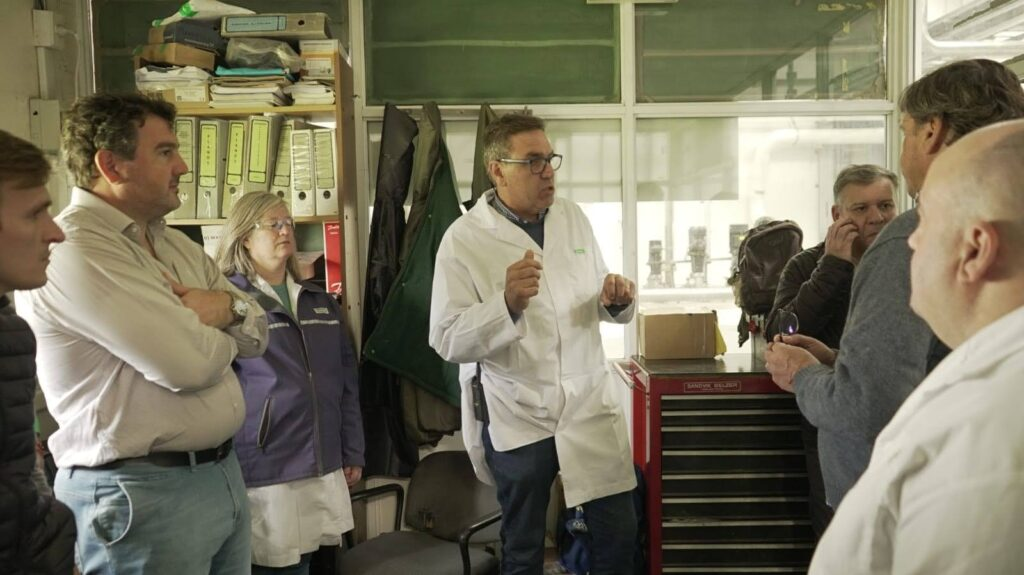 Foto: Flavio Mastellone con autoridades municipales de Trenque Lauquen en el año 2024, cuando los invitó a realizar una recorrida por la planta y la última gran inversión que puede observarse en la fotografía.