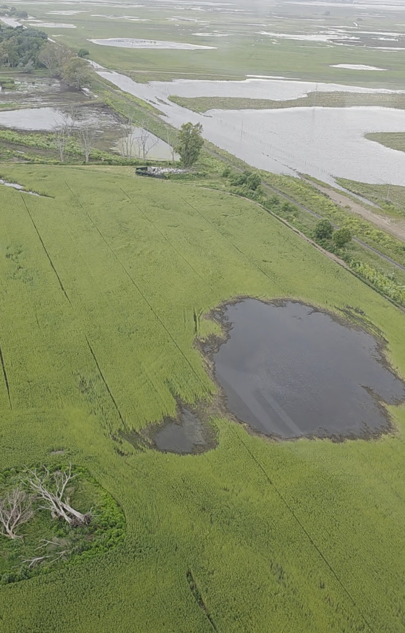 Gentile les presentó un informe sobre el impacto de la emergencia hídrica en el distrito de Nueve de Julio. La intendenta describió las dificultades que enfrentan los habitantes y las áreas más afectadas. Luego, recorrió el distrito en helicóptero de la provincia y se brindó ayuda a una familia aislada.