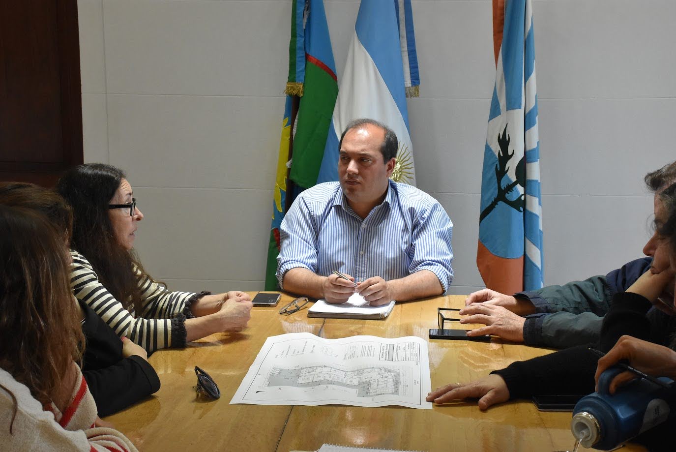 Reunión del intendente municipal de Trenque Lauquen con el equipo de coordinación de Salud Mental de Región Sanitaria II. El motivo: avanzar en la articulación y coordinación de acciones vinculadas a los lineamientos de trabajo del nuevo Centro Comunitario de Salud Mental y Consumos Problemáticos que se construye en Trenque Lauquen. Participaron Patricia Hernández, psicóloga social y coordinadora de Salud Mental de Región Sanitaria II, quien estuvo acompañada por Paola Boccalari, psicóloga y Sofía Trapiella, trabajadora social, el secretario de Salud, Dr. Sergio Valente; la directora del Hospital Municipal Dr. Pedro T. Orellana, Dra. Silvina San Juan y la directora de Salud Comunitaria del municipio, Victoria Domínguez.