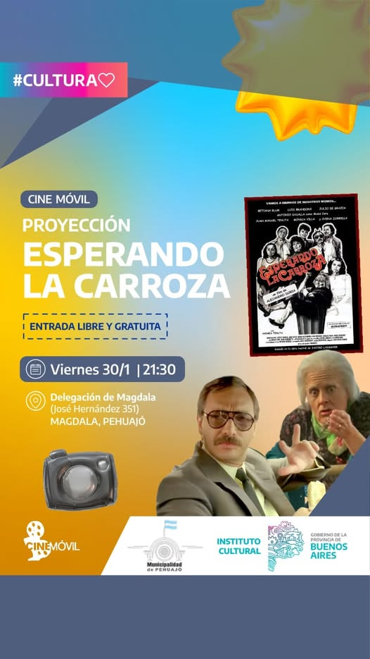 En acción conjunta entre el Instituto Cultural de la provincia de Buenos Aires y la Secretaría de Cultura y Gestión Comunitaria se proyectará Esperando la Carroza.