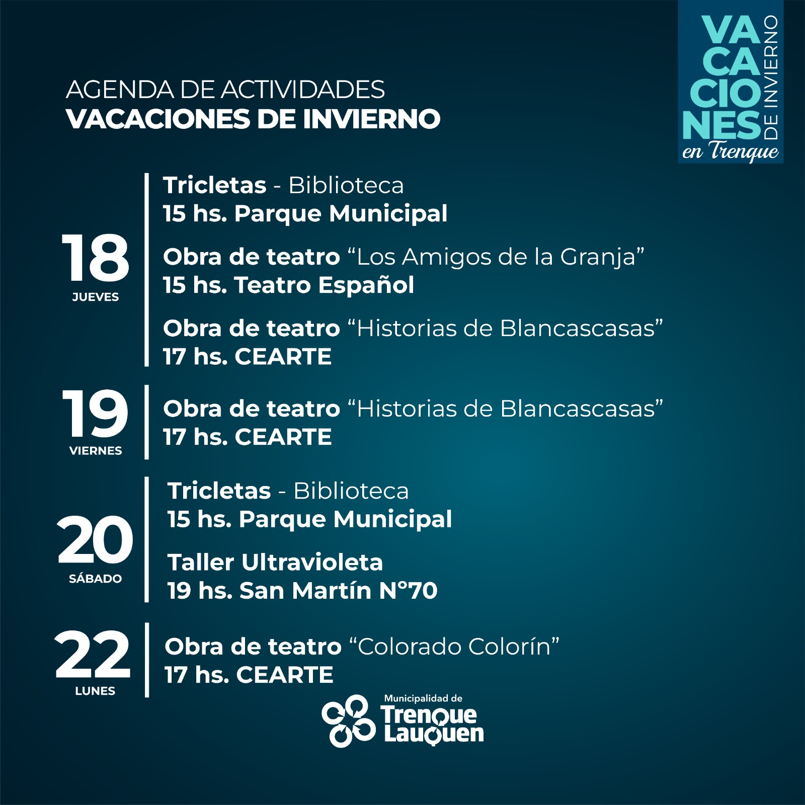 Actividades que organiza y patrocina durante las vacaciones de invierno el municipio de Trenque Lauquen