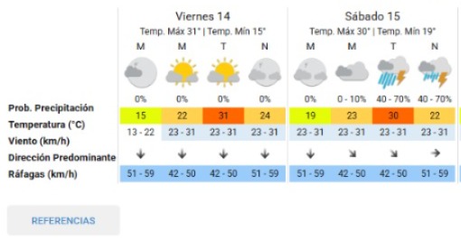 Temperatura de verano. Llegó a los 35 grados a la 14.45 horas y la mínima de 9.5 grados. Vientos suaves del norte, con ráfagas máximas de 22.2 kilómetros por hora.