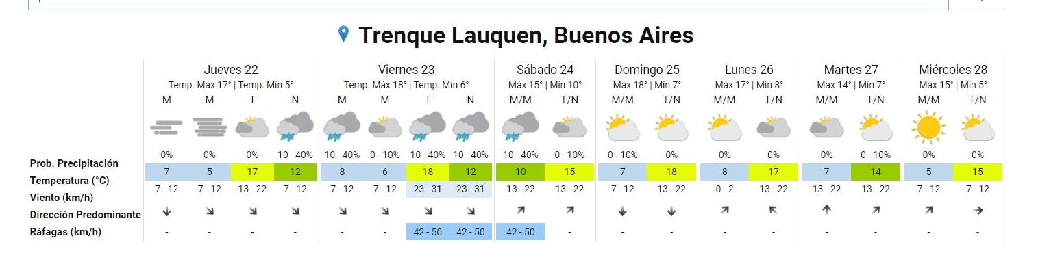 El pronóstico anticipa lluvias por la noche de mañana, el viernes y sábado en T.Lauquen