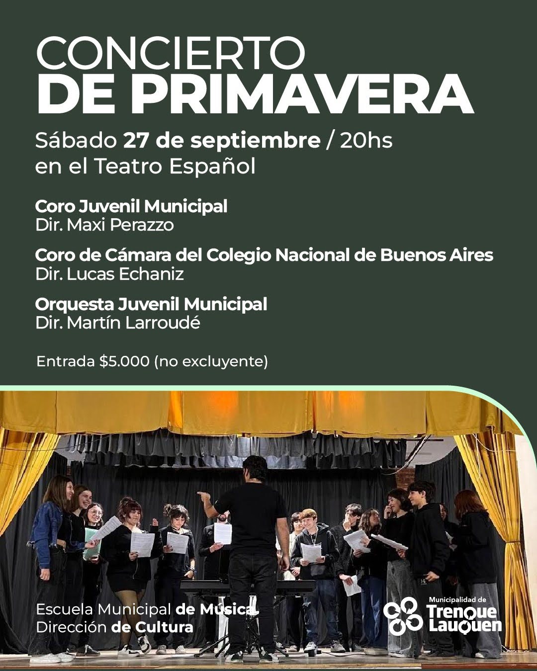 Hoy Concierto de Primavera en el Teatro Español de Trenque Lauquen