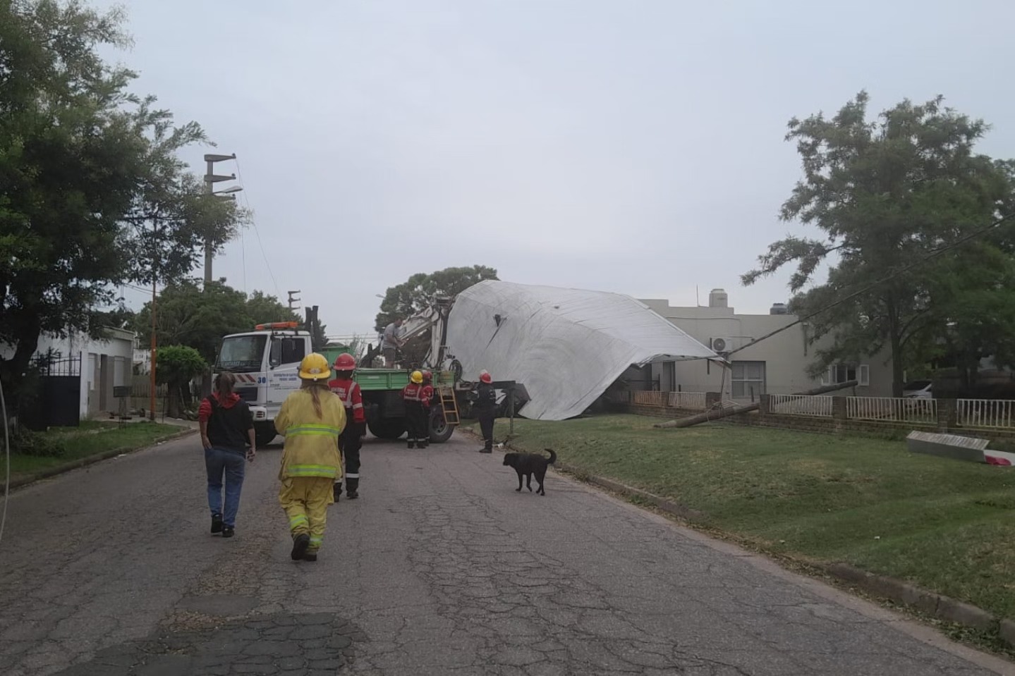El mayor daño fue en el mencionado establecimiento educativo. La estructura de la cubierta, quedó cerca de la vivienda ubicada enfrente.
