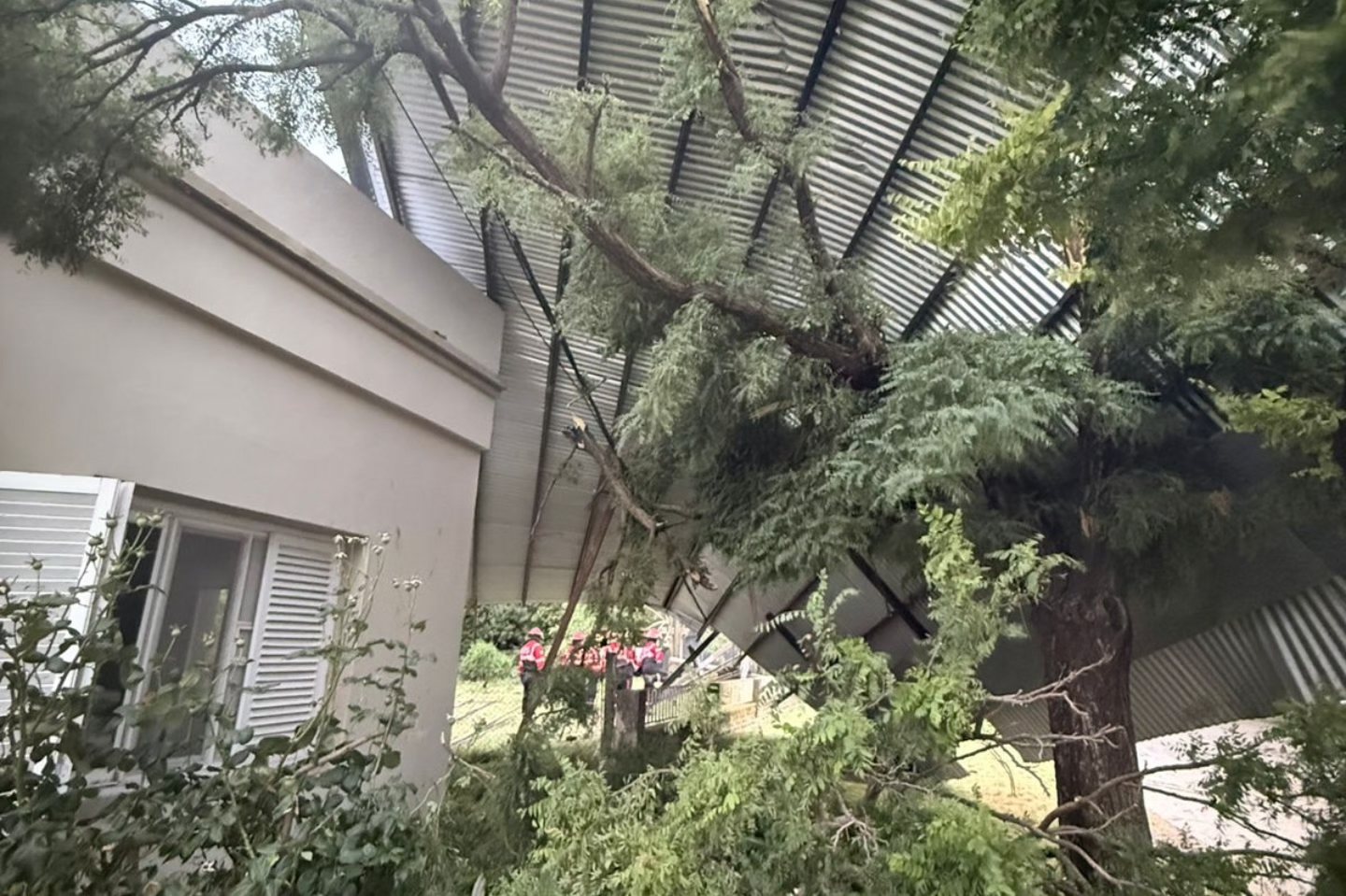 Hubo daños materiales en distintos puntos, caída de plantas, corte de energía eléctrica y la voladura de una gran parte del techo de la Escuela Primaria n° 17 “José Manuel Estrada”