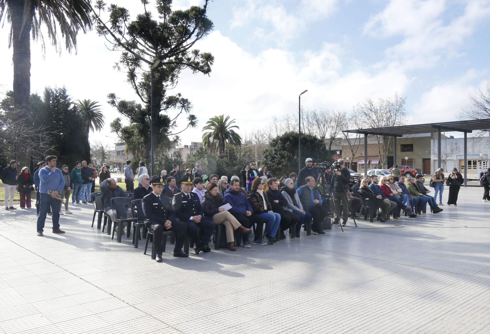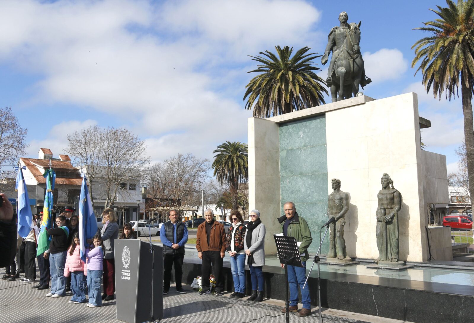 El acto fue encabezado por el intendente Francisco Recoulat y contó con la presencia de autoridades municipales y concejales; consejeros escolares; representantes de instituciones; la Fortinera Trenquelauquenche, Virginia Lafit, y vecinos/as de la comunidad que se sumaron a la conmemoración.