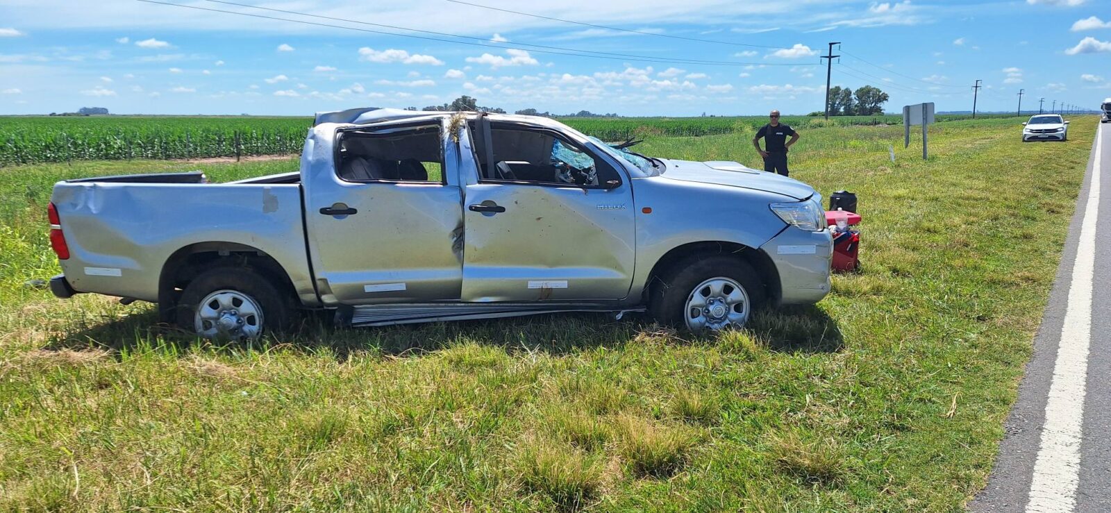 Un despiste produjo el vuelco de una camioneta Toyota Hilux con 4 ocupantes, de nacionalidad boliviana, radicados en Mendoza, en la Ruta Nacional 188, jurisdicción de Ameghino.