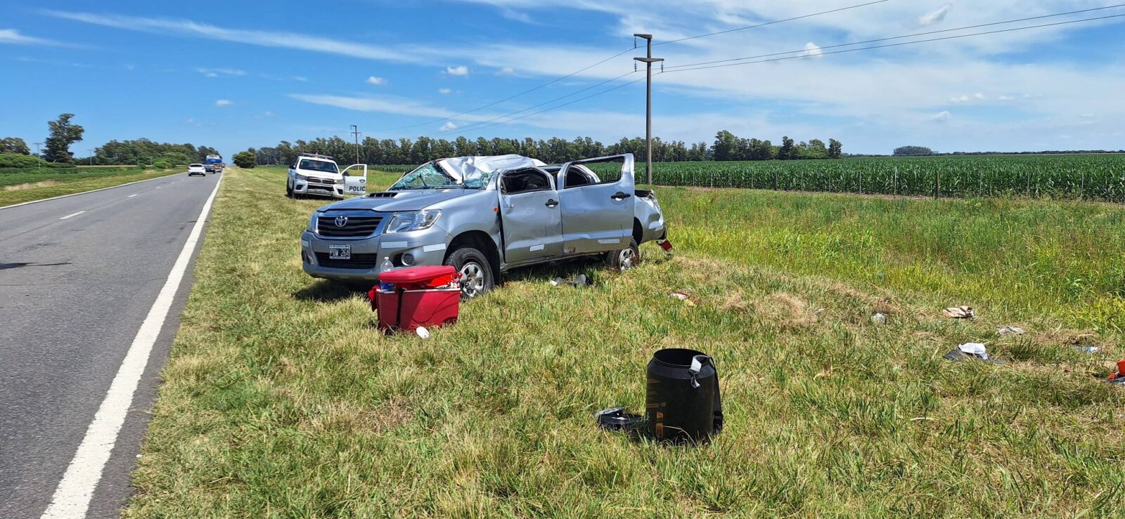 Espectacular vuelco de una camioneta en la Ruta 188, jurisdicción de Ameghino, sin lesionados