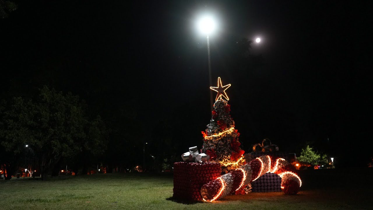 Los adornos fueron realizados por personal del Polo Ambiental Trenque Lauquen, utilizando material reciclable. Este año se colocaron en plazas, en la Ampliación Urbana y en el cartel de ingreso a la ciudad, sobre el acceso a la Ruta Nacional nº 33.