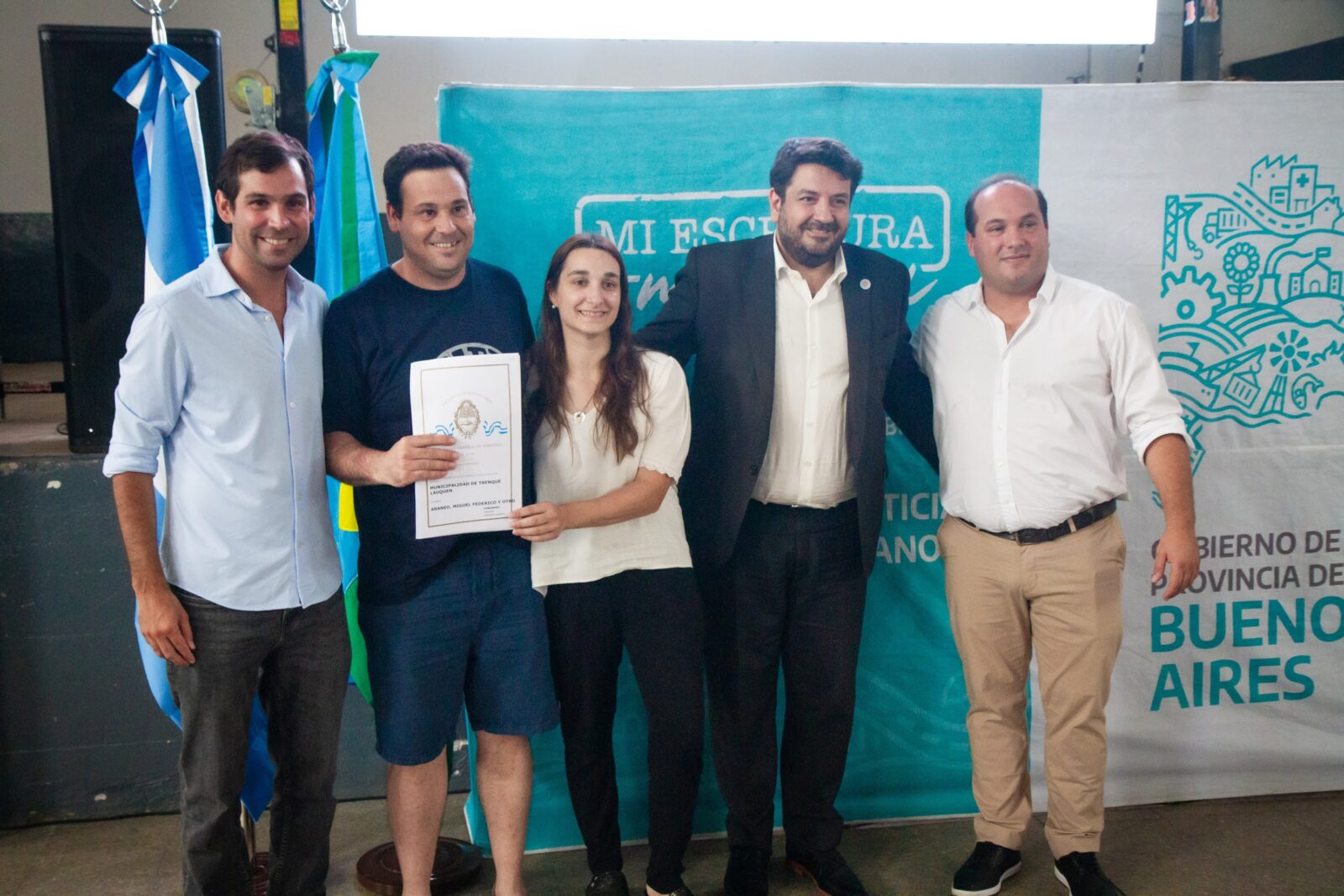 El intendente Francisco Recoulat y el ministro de Justicia y Derechos Humanos de la provincia de Buenos Aires, Juan Martín Mena encabezaron en la sede del Club Tres Llantas, el acto de entrega de 400 escrituras, en el marco del programa “Mi escritura, mi casa”, implementado por el Gobierno bonaerense.