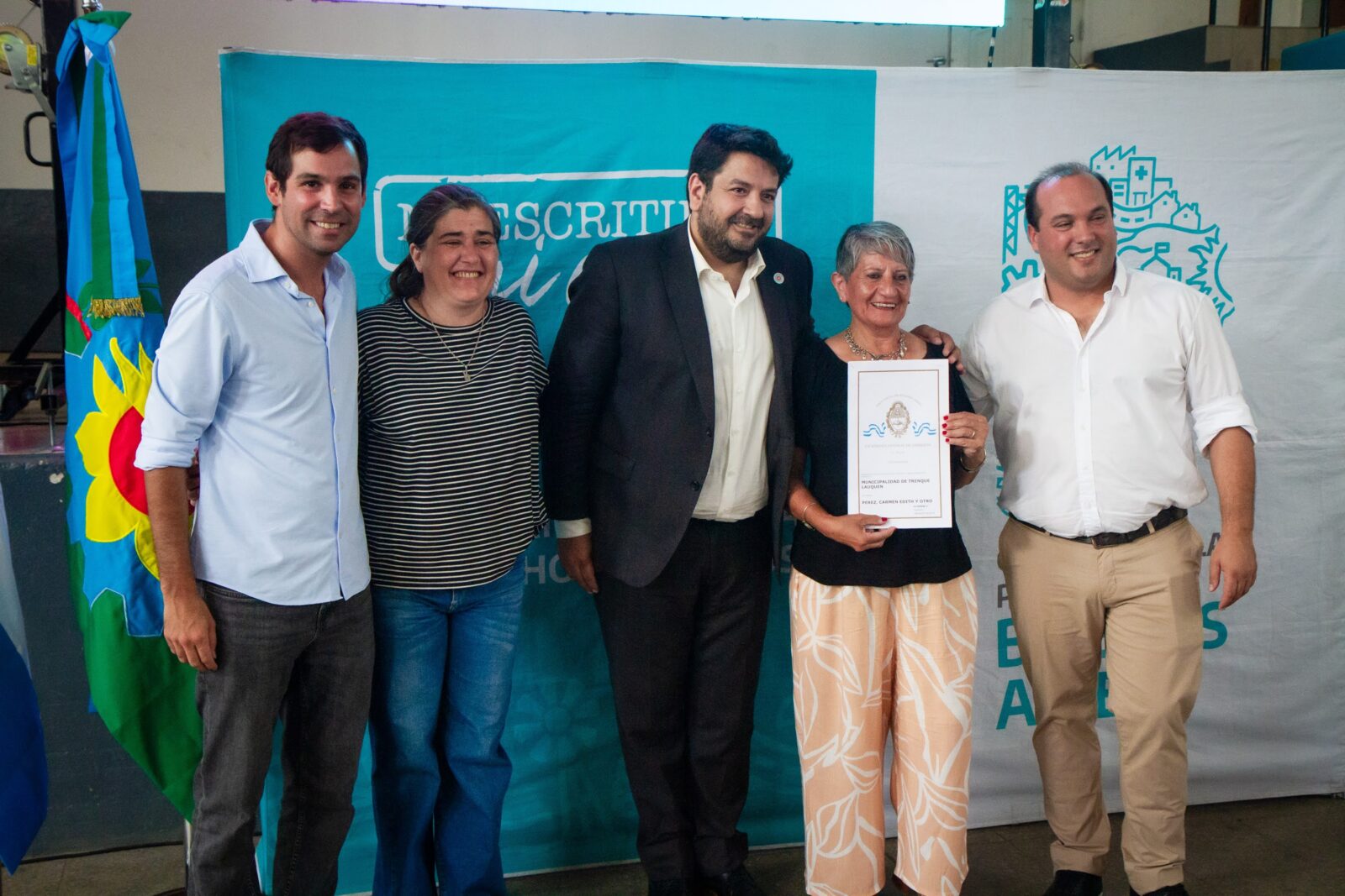 “Este es un trabajo que se articula en cada municipio en conjunto con las áreas de Legales que trabajan con toda la información, los Concejos Deliberantes que lo declaran de interés legislativo para tramitar las escrituras a través de la Escribanía General de Gobierno y después la Provincia que avanza con la firma y la entrega posterior”, destacó el mandatario comunal al hablar en la oportunidad.