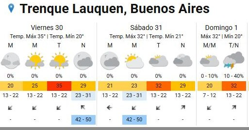 Estimación de alta temperatura con alguna nubosidad, con baja en la marca sábado y domingo