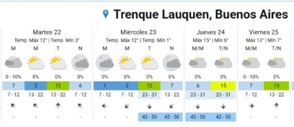Estimación de baja temperatura con cielo parcialmente nublado durante todo el martes y miércoles.