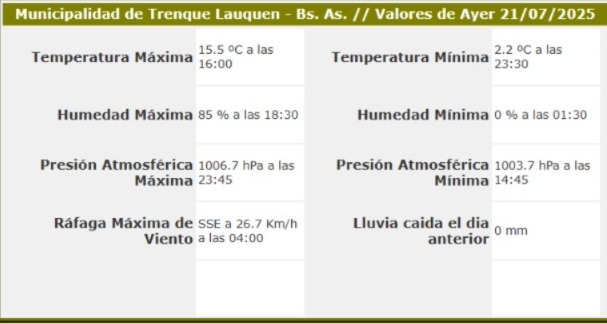 Sensores Climáticos Municipalidad de Trenque Lauquen