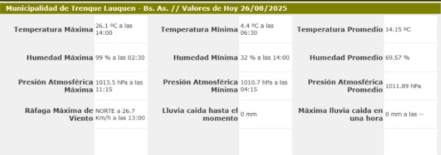 Sensores Climáticos Municipalidad de Trenque Lauquen