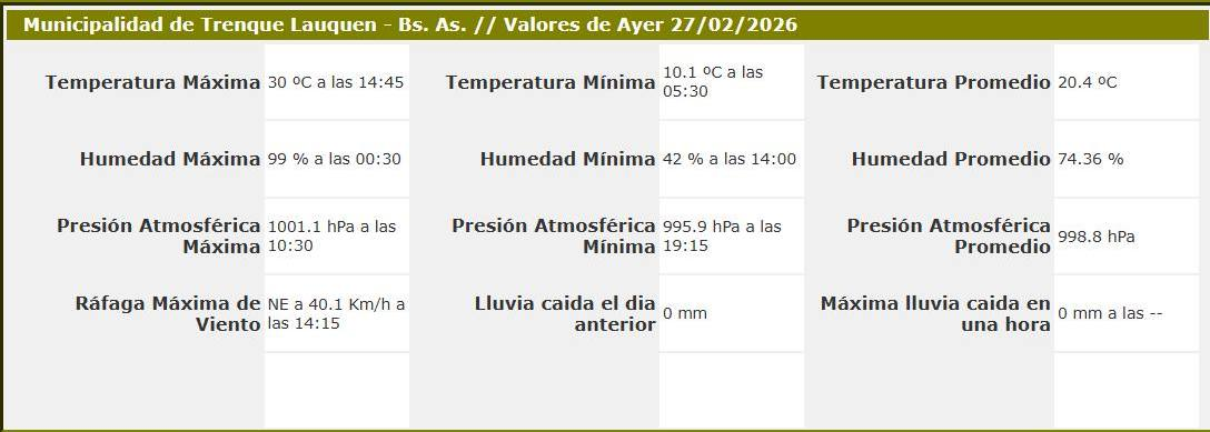 Sensores Climáticos Municipalidad de Trenque Lauquen