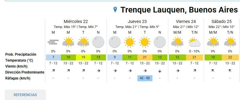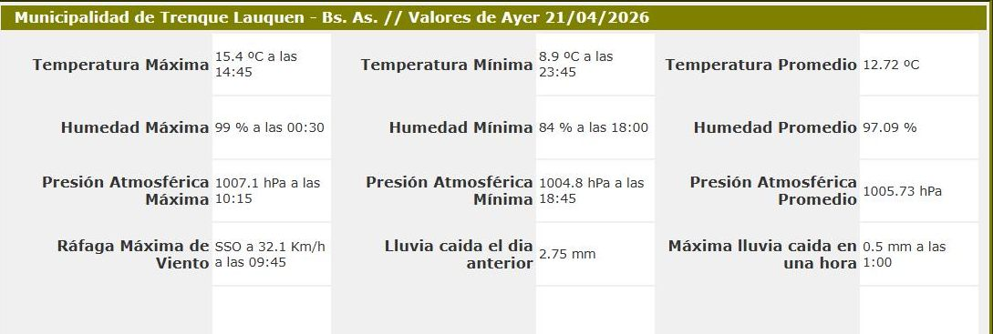 Llovió muchos menos de lo estimado: 2,75 mm. El viento prevaleció del sector SSO con ráfagas que llegaron a 32.1 km/h, y la temperatura máxima fue de 15.4° a las 14.45