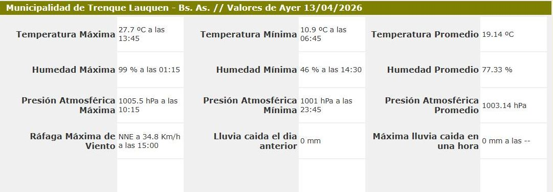 Sensores Climáticos Municipalidad de Trenque Lauquen