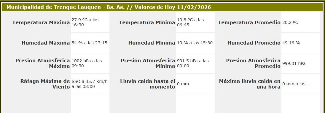 Sensores Climáticos Municipalidad de Trenque Lauquen