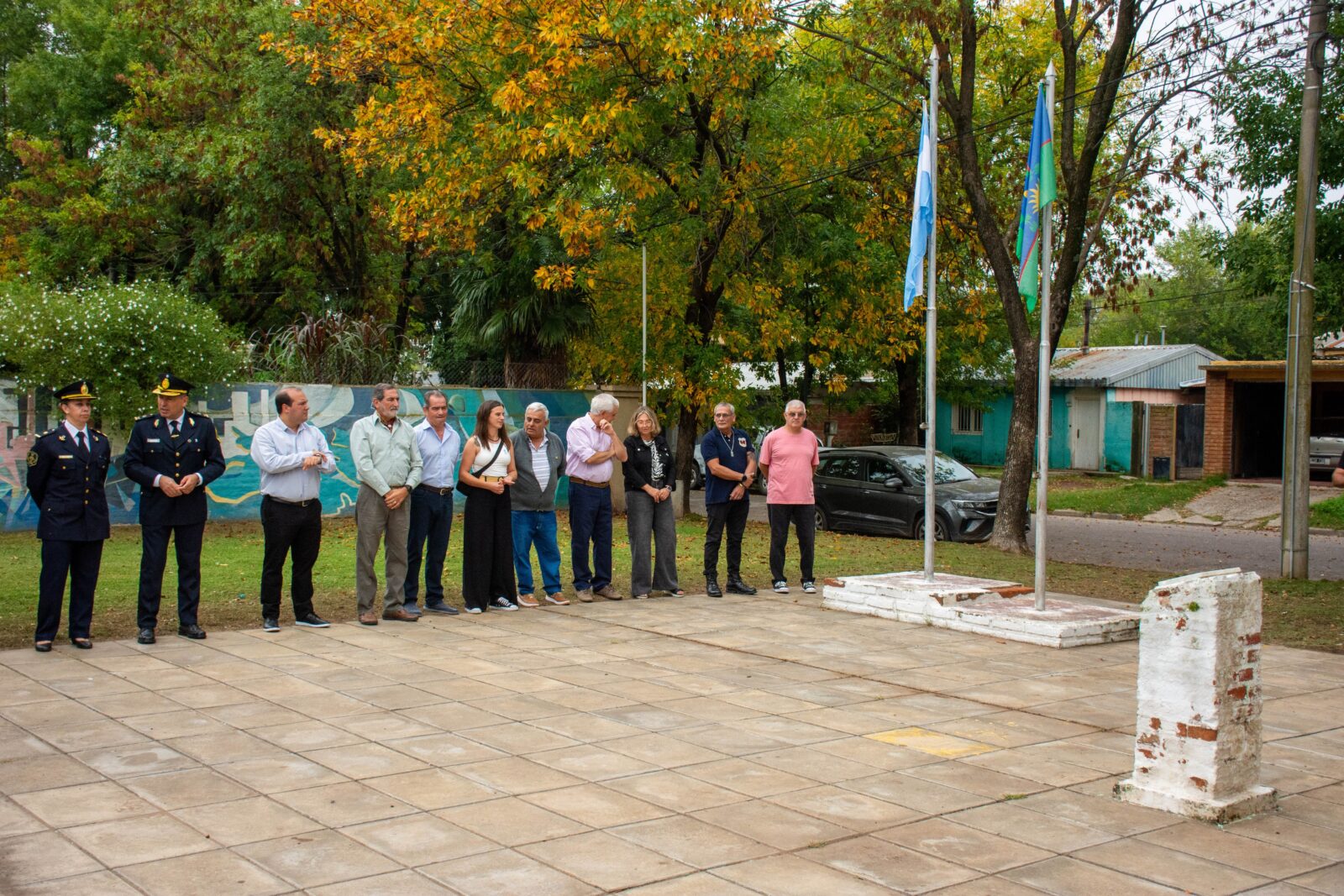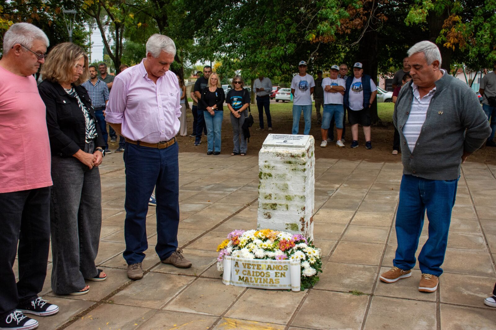 El acto central se cumplió en el Monumento a los Veteranos y Caídos, ubicado en el ingreso a la Ampliación Urbana, con la participación de autoridades, veteranos, instituciones y vecinos de la comunidad.