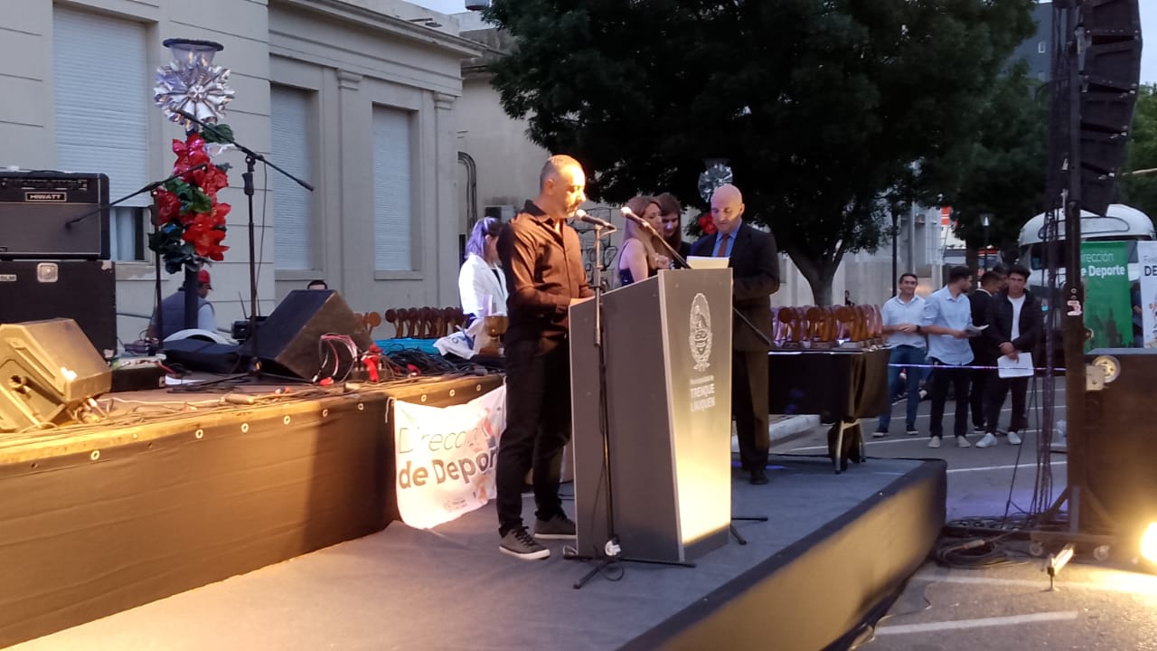 El periodista deportivo David Díaz, habló en nombre de los periodistas deportivos del distrito destacando el trabajo que realizan los clubes e instituciones que promueven el deporte. “Cuando uno empieza a recorrer la ciudad ve clubes, gimnasios, espacios abiertos, y lugares privados donde hay muchísima gente, no solo deportistas, que ojalá lleguen a nivel profesional y puedan representar a la ciudad de Trenque Lauquen de la mejor manera, sino también pequeños y personas mayores y nos alegra poder estar acompañando a cada uno de ellos”, sostuvo.