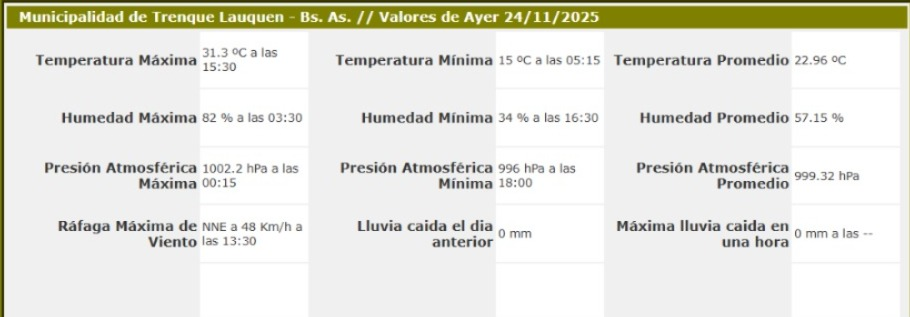Sensores Climáticos Municipalidad de Trenque Lauquen