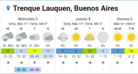 La temperatura máxima del martes llegó a los 21.9 grados y la mínima de 4.2 grados, mientras que hubo ráfagas del NNE a 34.8 kilómetros por hora.
