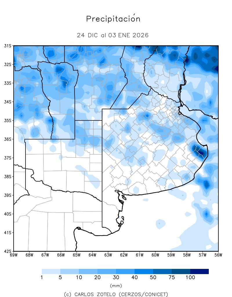 Las precipitaciones relevadas por la Red de Estaciones Meteorológicas (REM) de la BCP al 28 de diciembre promediaron 23 mm, lo que representa un 61% por debajo de la media de los últimos 9 años.