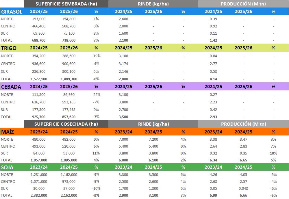 En términos generales, la campaña puede calificarse como muy buena en cuanto a rendimientos, aunque con una marcada heterogeneidad regional, principalmente asociada al impacto diferencial de las heladas.