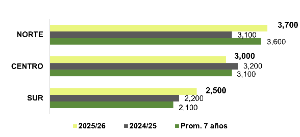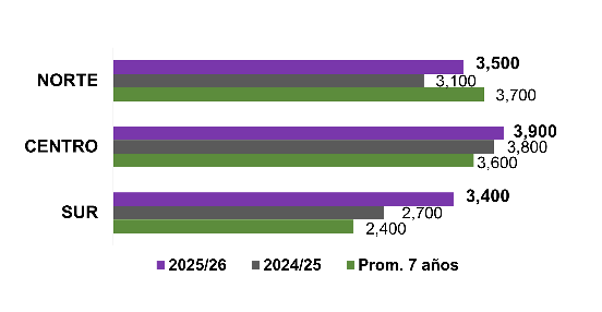 - En el sur y centro-este del área mantienen un estado general bueno a muy bueno, sostenido por perfiles hídricos adecuados.