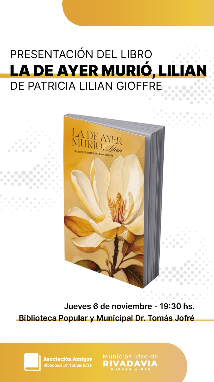 El próximo jueves 6 de noviembre se presentará en América el libro La de ayer murió, Lilian, de Patricia Lilián Gioffre.