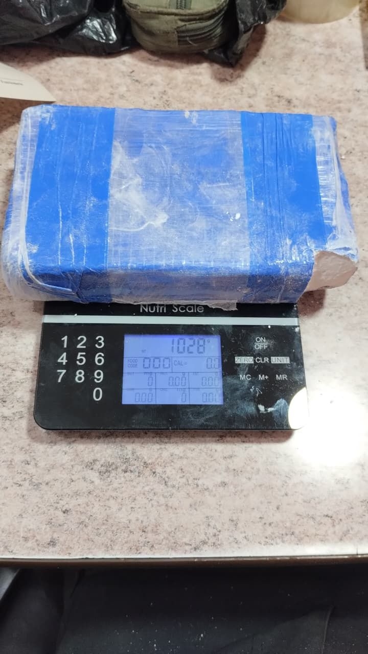 Dentro de los paneles del vehículo se halló un envoltorio que contenía un paquete compacto con 1,028 kilogramos de cocaína.
