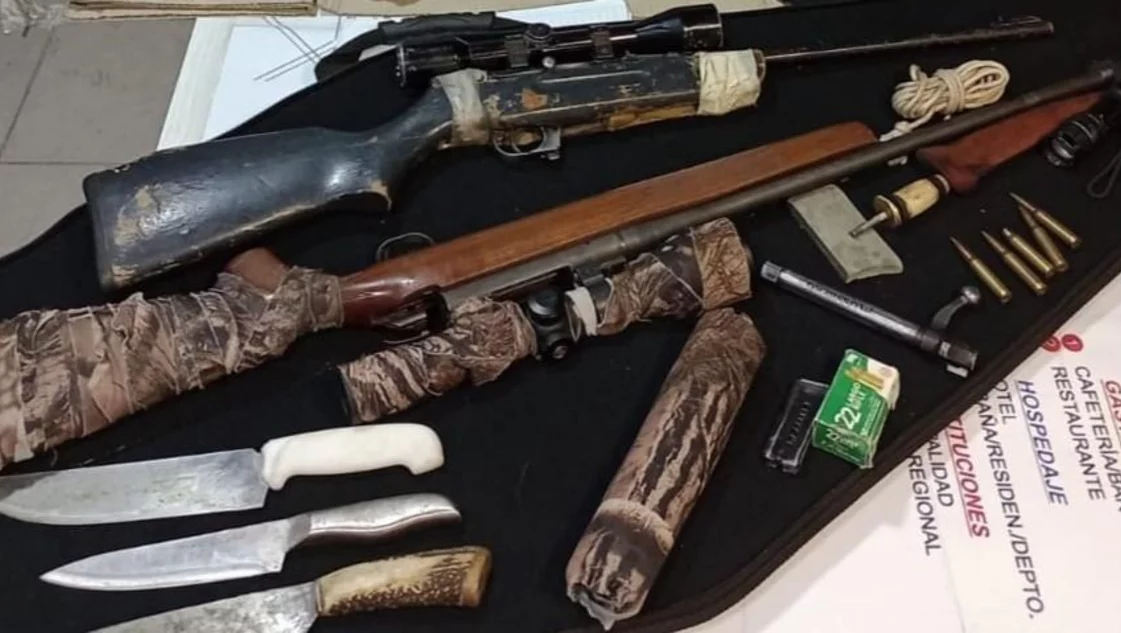 Se montó un operativo y el auto fue interceptado. Se le secuestró el vehículo, dos armas – un fusil y una carabina, un silenciador, miras telescópicas, municiones, una cabeza de ciervo de ocho puntas y cortes de carne de jabalí (una paleta y dos cuartos de jabalí), entre otros elementos.