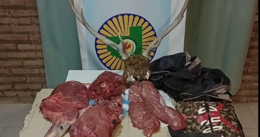 Personal policial de La Pampa montó un operativo en las rutas provincial 10 y 105 donde interceptó un auto que había ido en busca de dos furtivos que llevaban en sus mochilas armas, carne de jabalí y una cabeza de ciervo colorado de ocho puntas.